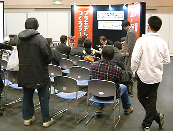伺ったのは、08年3月15日と16日に静岡ツインメッセで開催された『第7回モデラーズフリマ』。会場では、川口名人による、プラモデルの実演制作とトークが楽しめる「ガンプラアカデミー モデリングトーク」が行われており、なんと今回はモデリングトークの特別ゲストとして、ハードグラファー木内が登壇。我々の完成品を手に、川口名人、そして新たな『U.C.HARDGRAPH』のマスコットキャラ、リリっちとトークしてまいりました。